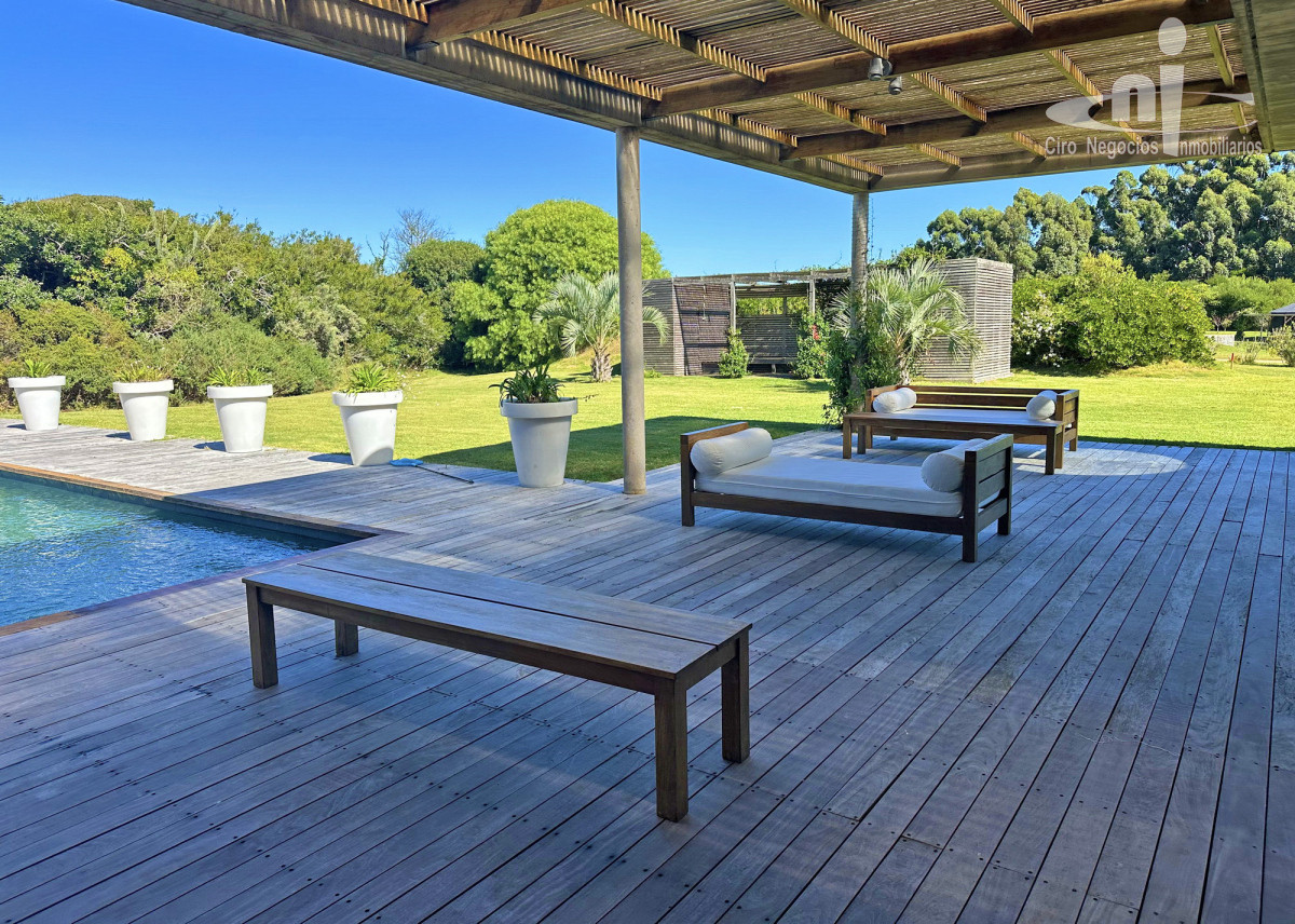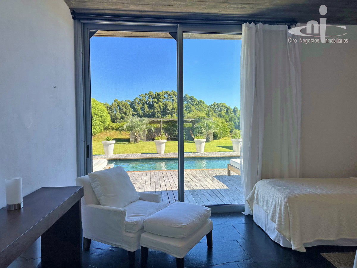 You will find this modern home 500 m2, with 3 hectares of private property, fully equipped, ready for inmediate enjoyment. With ocean views built on a 30 acre estate in the most exclusive area of José Ignacio just minutes from the town center. The house has 5 large in-suite bedrooms, dining living room area that accommodates 10 - 12 people, outdoor BBQ -parilla, heated floors for cozy winters, air conditioning, heated pool, large lounge bedssofas, central music system. Native coronillas are the refuge from hot sunny windy days , lavender gardens, private entrance security. the house is fully equippedwith all amenities available.
